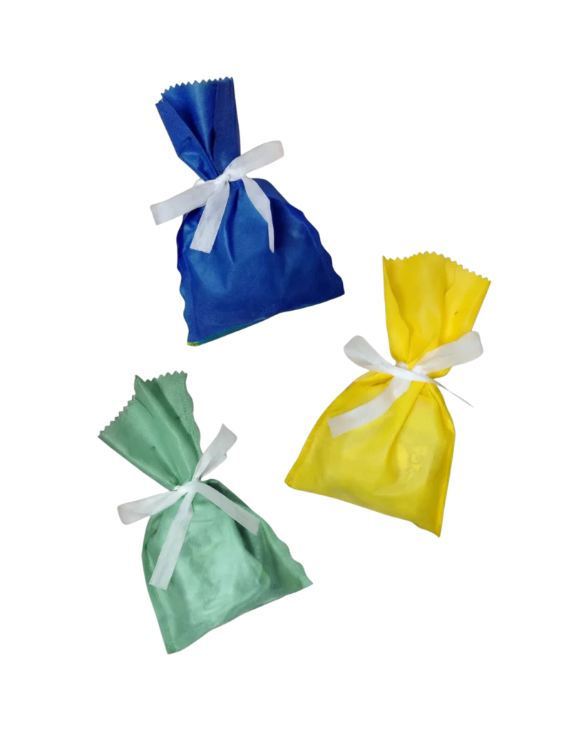 Os Sacos Surpresa da TNTEX são fabricados em TNT resistente, com acabamento em ultrassom que garante melhor apresentação e padronização.